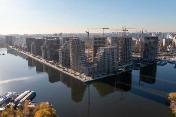 В пространстве КРТ должна быть предусмотрена архитектурная концепция, некий общий стиль. Например, в «Ривер Парке Коломенское» каждый из домов выглядит как раскрытое к реке пространство с приподнятым над уровнем автомобильных проездов внутренним двором. При этом ориентация в сторону реки подчеркнута эффектными террасами.