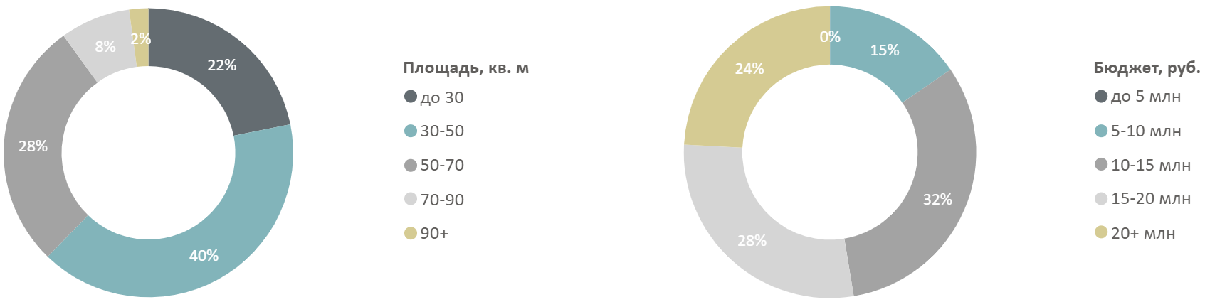 За I полугодие сократилась доля квартир и апартаментов в бюджете до 15 млн руб. (32%, -2 п.п. за полугодие).