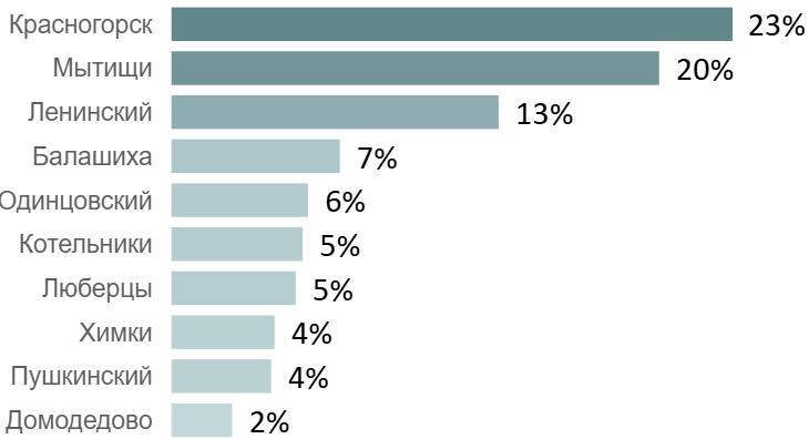 10 округов Московской области с максимальной долей предложения (в шт.)