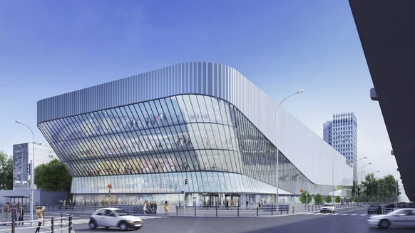 Мне не удалось сфотографировать, но под этой полукруглой четырехэтажной пристройкой находится въезд в подземный паркинг. А в самой пристройке (с другого торца такая же) поселятся спортивно-оздоровительный центр и офисный комплекс с рестораном. В цокольном этаже расположатся офисные помещения.