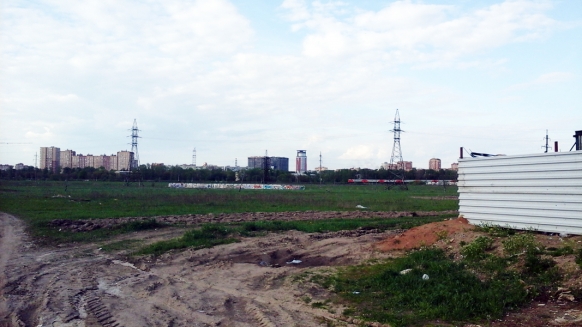 Поясню поподробнее. Фотография сделана с самой ближайшей точки строительства к железной дороге. В кадр даже попал проходящий поезд. Станция «Воронок» слева. Вроде как идти пешком далековато, но в обширных планах застройщика – строительство домов на всем этом поле. Так что когда-то и для кого-то путь станет значительно короче. Ранее здесь был тепличный комплекс.