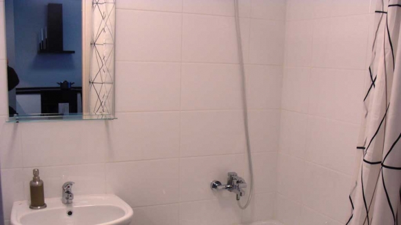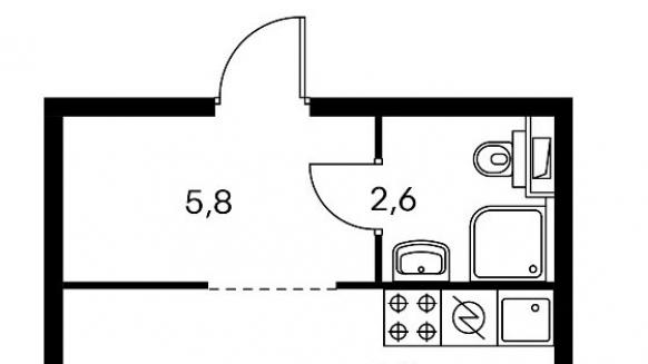 Студия общей площадью 31 кв. м без всяких изысков предлагает владельцу прихожую 5,8 кв. м, 22-метровую кухню-спальню-гостиную с условным разделением на рабочую зону и зону отдыха и небольшой совмещенный санузел, куда можно поставить только душевую кабину.