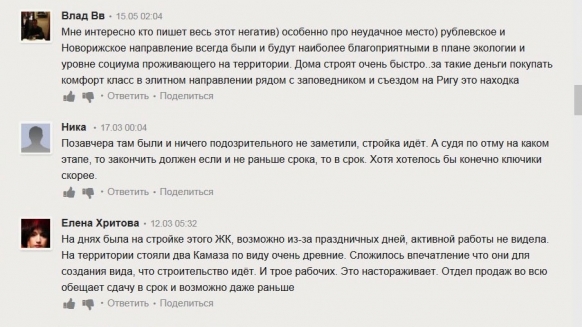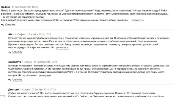 Есть категория острожных читателей-покупателей, которые сомневаются в возможности появления метро рядом с новостройкой, опасаются стояния в пробках при полном заселении комплекса, отмечают отсутствие на сайте важных разрешительных документов.