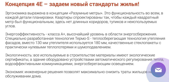 В одной полосе прокрутки поместились все элементы содержания: описание проекта, условия покупки, фотогалерея, контакты и всего два документа – проектная декларация с редакциями и разрешение на строительство.