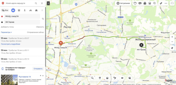 Если ехать на личном автомобиле, то нужно свернуть с МКАД на 5А километре и двигаться по Носовихинскому шоссе в сторону Железнодорожного. Расстояние 13 километров, время в пути без пробок 22 минуты. Но может быть и час, и полтора, все зависит от дорожной ситуации.