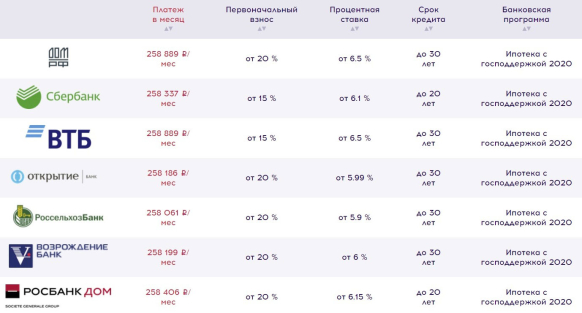 Ипотечный кредит покупателю могут предоставить в одном из многочисленных банков - партнеров, в том числе Сбербанке, Банке «ДОМ.РФ», ВТБ и других.