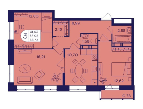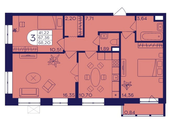 Планировка трехкомнатной квартиры 68,73