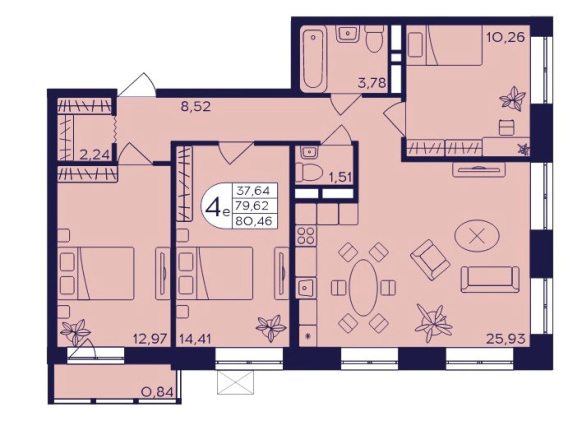 Планировка четырехкомнатной квартиры евро 80,46