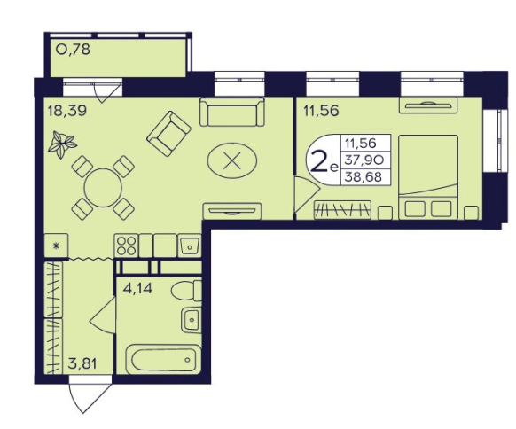 Планировка двухкомнатной квартиры евро 38,68