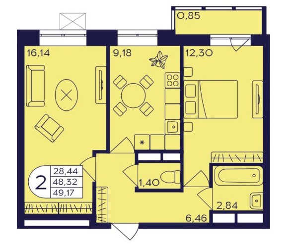 Планировка двухкомнатной квартиры 49,17