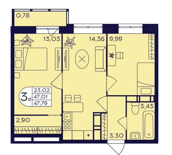 Планировка трехкомнатной квартиры евро 47,79