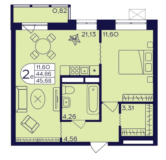 Планировка двухкомнатной квартиры евро 45,68