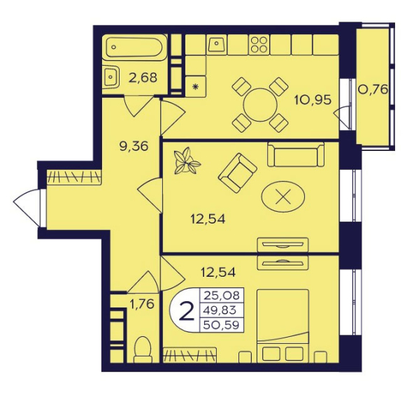 Планировка двухкомнатной квартиры 50,59