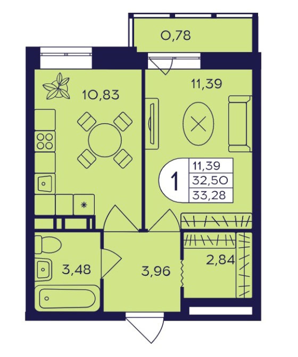 Планировка однокомнатной квартиры 33,28