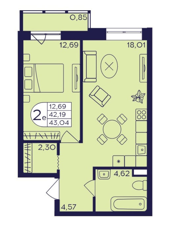 Планировка двухкомнатной квартиры евро 43,04