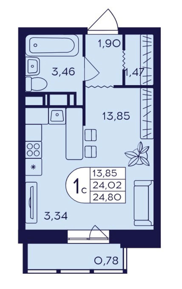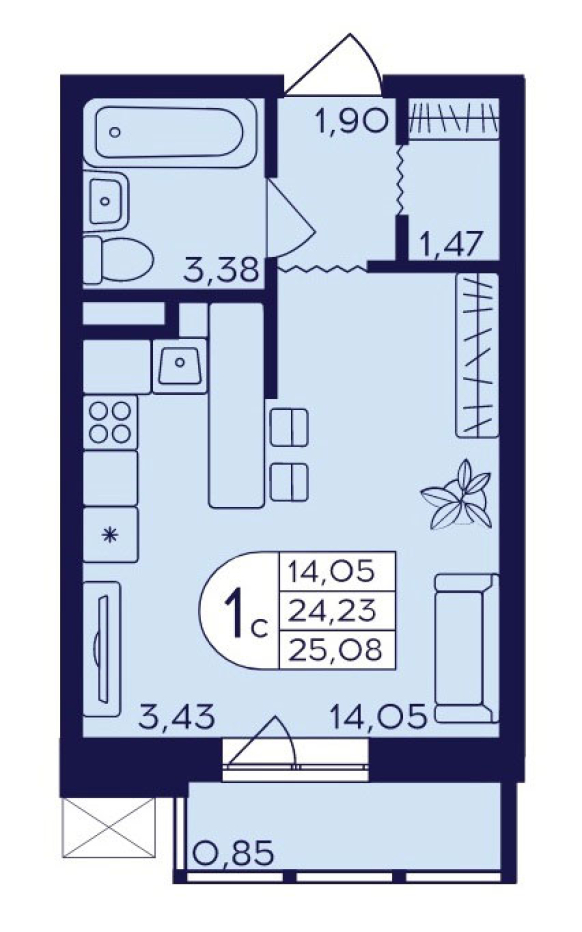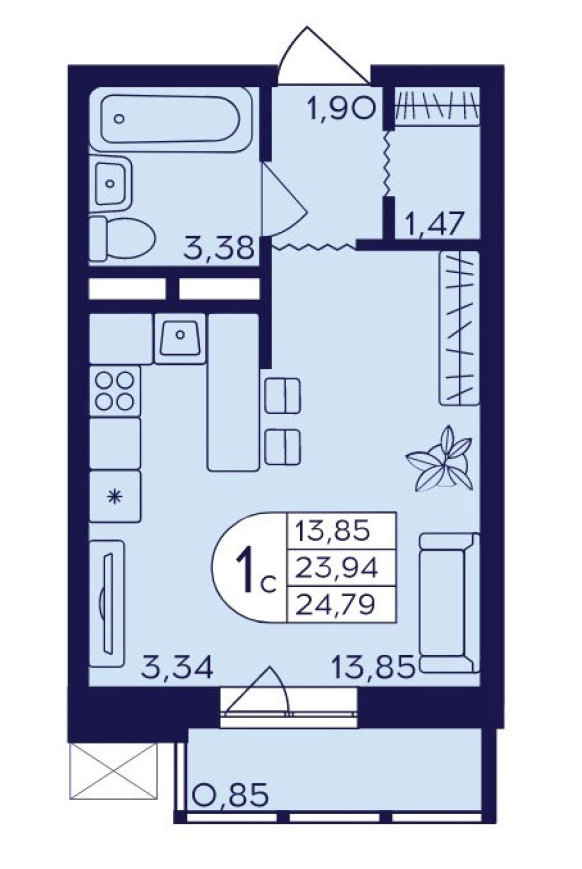Планировка студии 24,79