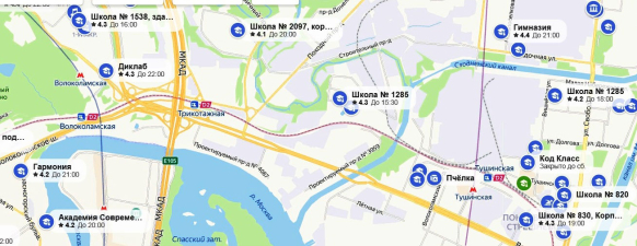 Непосредственно рядом с ЖК можно найти только заборы предприятий и Пятницкое шоссе. Все необходимое для нормальной жизни - школы, детские сады, поликлиники, сетевые продуктовые магазины - далеко не в шаговой доступности. Либо за рекой, либо за автодорогой, либо за железной дорогой.