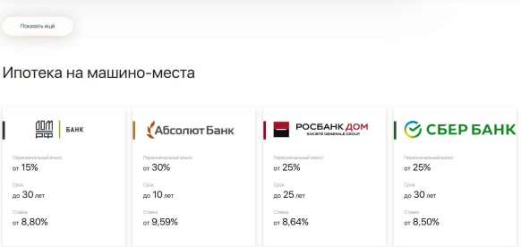 Существует возможность оформить ипотеку для покупки машиноместа или внеквартирной кладовой. Если необходима рассрочка, то она тоже доступна. Условия такие: без процентов на 3 месяца, первоначальный взнос 50%.
