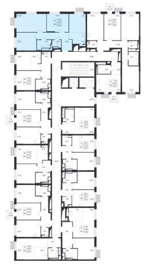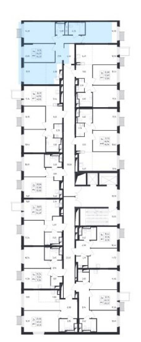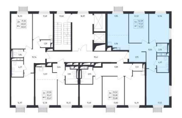 Корпуса многосекционные, 11 секций. На этаже от 4 до 12 квартир. В каждой секции установят по 2 лифта производства Щербинского лифтостроительного завода.