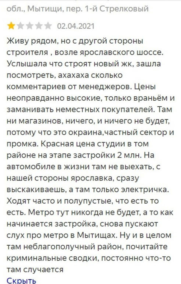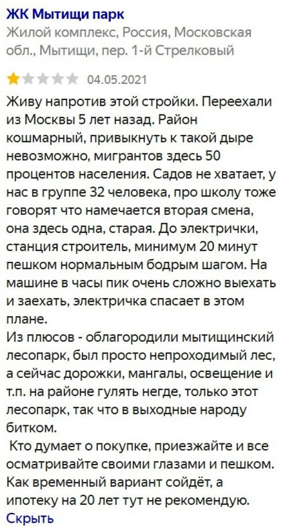 В данном рейтинге «Мытищи Парк» выходит на позицию ниже средней.