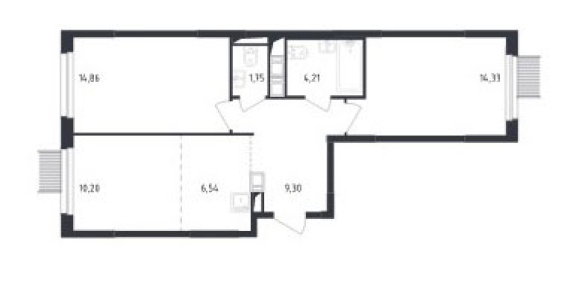 Трехкомнатные квартиры оснащены входными группами от 7,23 до 9,3 кв.м. А если с учетом внутреннего коридора то и 12,46 кв.м. санузел раздельный с помещениями от 1,75 до 4,21 кв.м. В квартирах евро формата универсальное помещение почти 17 кв.м., а в классике одна только кухня может занимать 16 кв.м. жилой площади. Спальни от 10,15 до 14,86 кв.м.