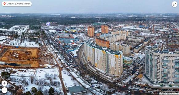 Строительство на земельном участке в кадастровом квартале 50:12:0101302 ведет ООО «Специализированный застройщик «Самолет-Мытищи», созданное в 2018 году. Земля принадлежит застройщику на праве собственности. Раньше на этом месте располагалось стрельбище «Динамо».
