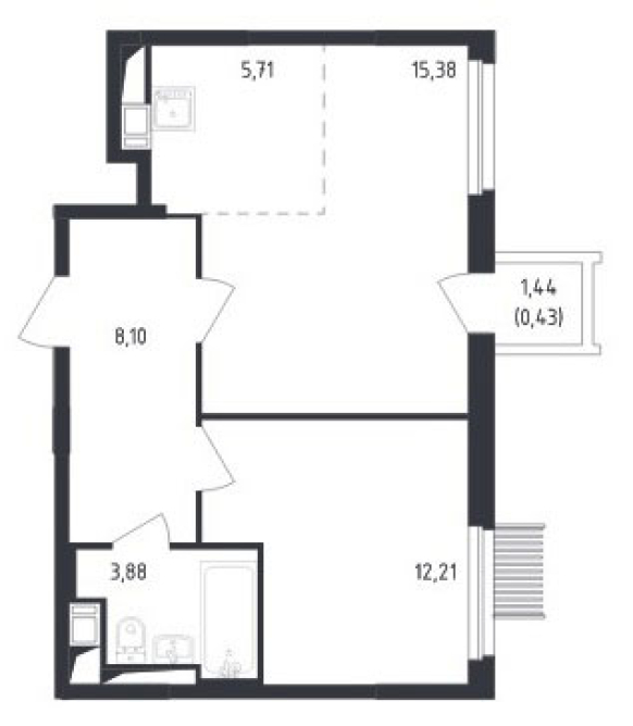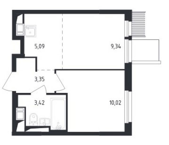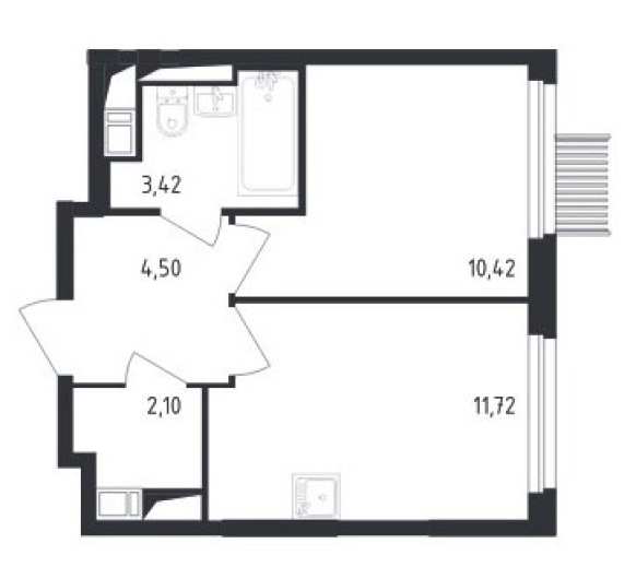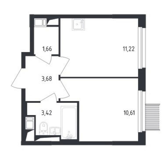 В однокомнатных квартирах формата евро (фактически - студиях) входная зона площадью от 3,64 до 3,73 кв.м., совмещенный санузел площадью от 3,0 до 3,4 кв.м. и универсальное помещение площадью от 13 кв.м. до 20,26 кв.м. В квартирах классического формата входные группы площадью от 3,68 до 4,5 кв.м., кухни от 10,42 до 11,72 кв.м., спальни от 10,42 до 11,72 кв.м. И еще есть кладовые от 1,66 до 2,1 кв.м.