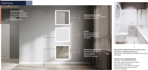 При покупке квартиры с отделкой можно будет выбрать одно из двух цветовых решений - светлые или темные тона.