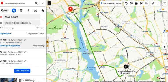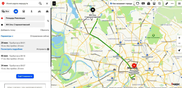 А от центра Москвы, например, от площади Революции, можно доехать по Тверской улице и Ленинградскому проспекту за 24 минуты (расстояние 16 километров).