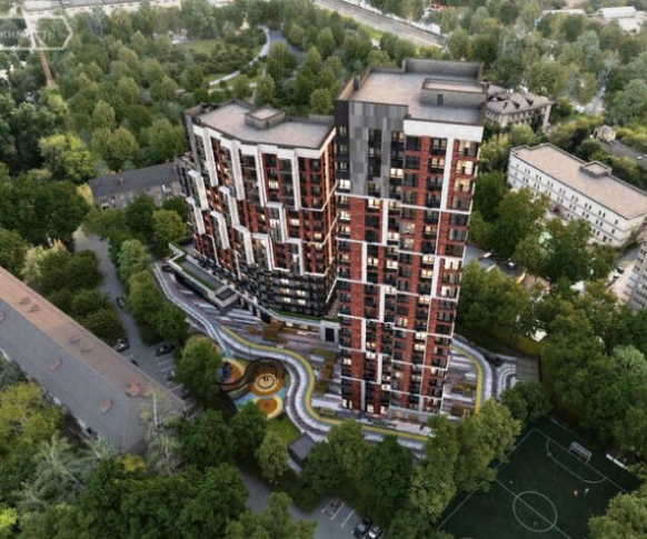 На земельном участке площадью 0,61 гектара строится двухсекционный жилой комплекс переменной этажности, 12-16 и 22 этажа с общим стилобатом. Строительство относится к категории «комфорт-плюс» и ведется по монолитной технологии.