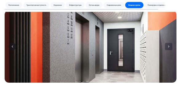 Входные группы сквозные, на уровне земли, оформлены по дизайнерским решениям. Дома многосекционные от 3 до 6 секций. В каждой секции по 2 лифта, на одном этаже от 5 до 9 квартир. Вход в подъезды по электронному ключу, причем устройства доступа обеспечат не только видеонаблюдение за подъездом, но и возможность идентификации пользователя по лицу. Видеонаблюдение будет и в лифте. В подъездах установят подъемники для маломобильных граждан. На дворовой территории будет организовано круглосуточное видеонаблюдение. В следующих очередях дворы будут огорожены и закрыты для посторонних.