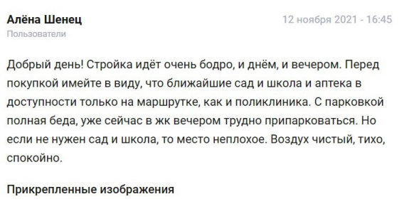 Из минусов присутствуют слабо развитая инфраструктура в шаговой доступности и... пожалуй, все.