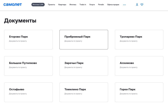 Но вкладку с документами придется поискать, она находится на сайте ГК «Самолет».