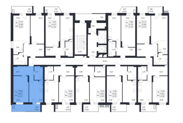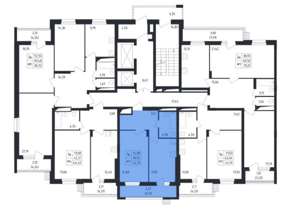 | Однокомнатные | 42,31 - 44,73 | 5 466 875 - 5 977 089 | 129 210-133 626 |