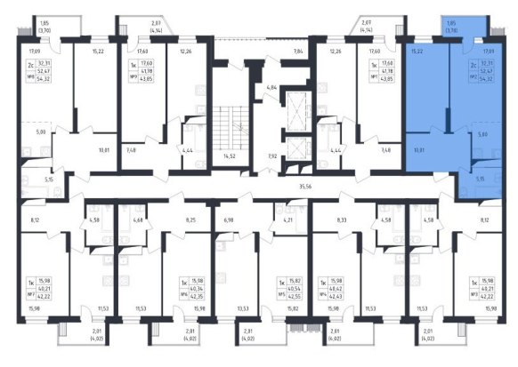 | Двухкомнатные | 54,32 - 76,2 | 7 038 796 - 7 942 812 | 129 580-104 236 |