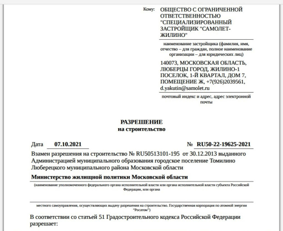 Строительство на земельных участках ведет ООО специализированный застройщик "Самолет-Жилино". Земля принадлежит застройщику на праве собственности. Компания зарегистрирована в августе 2019 года и не вела никакого жилищного строительства.
