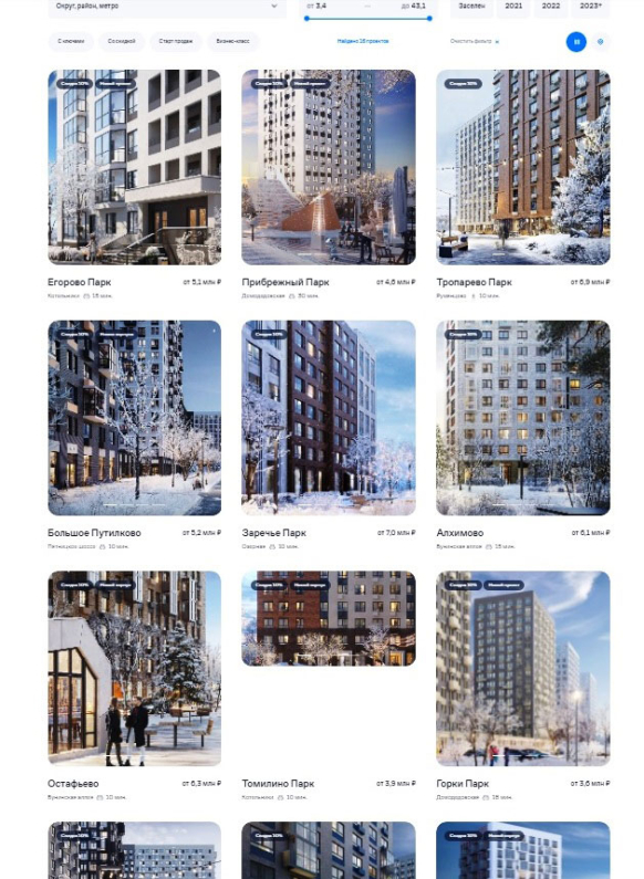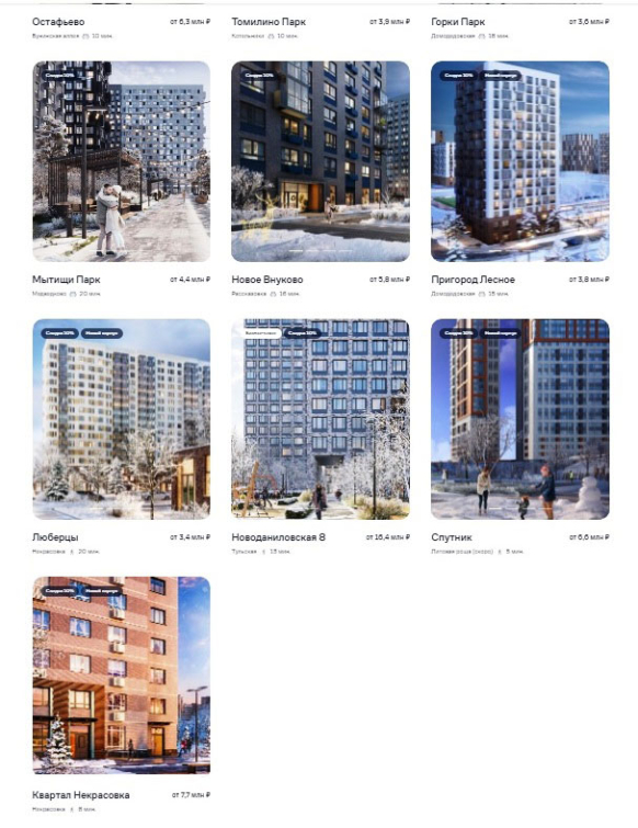 | «Облака 2.0» | Г. Люберцы | 47,0 | 6 739 021 | 143 383 | Есть | 4 квартал 2023 г. |
