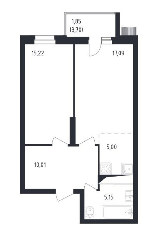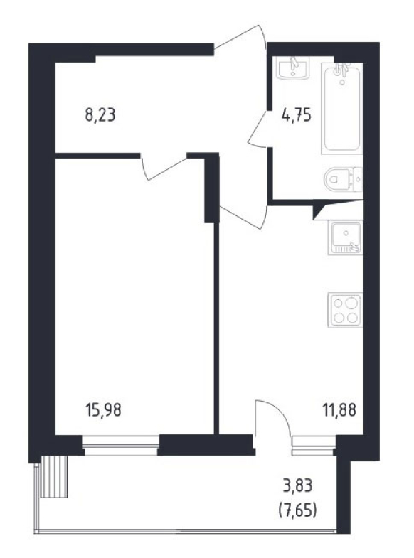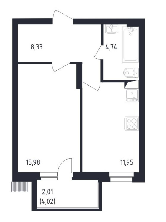 Однокомнатные квартиры запроектированы в классическом формате. Входная зона площадью от 7,67 до 8,33 кв.м., совмещенный санузел площадью от 4,58 до 4,75 кв.м., кухня площадью от 11,81 до 11,96 кв.м. и спальня площадью от 14,88 до 15,98 кв.м. А также лоджия или балкон площадью от 4,02 до 7,65 кв.м.