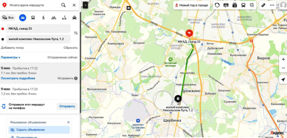 От 33 километра МКАД до комплекса чуть более 7 километров, это расстояние можно проехать на автомобиле по Варшавскому шоссе за 10 минут.