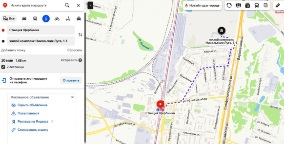 Если придется ехать на электричке, то от ЖК до станции МЦД-2 «Щербинка» на около 20 минут ходьбы (1,7 километра). А до Курского вокзала поезд доедет за 50 минут.