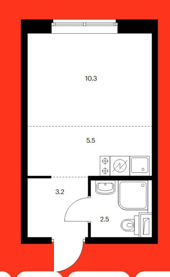 Студии стандартные, как и в любой другой новостройке. Входная зона площадью от 2,7 до 3,2 кв.м., совмещенный санузел с душевой кабиной площадью 2,5 кв.м., универсальное помещение площадью от 14,5 до 15,8 кв.м. И корзина для внешнего блока кондиционера за окном, да и то не во всех квартирах.