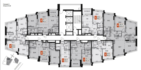 Корпуса двух - трехсекционные, в одной секции на этаже расположено от 6 до 9 квартир. В каждой секции установят по 3 бесшумных современных лифта производства японской фирмы Мицубиси грузоподъемностью 1050 и 825 килограмм.