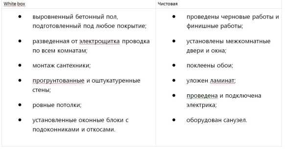 Квартиры продаются с двумя вариантами отделки: предчистовая «вайтбокс» и чистовая «под ключ» (в трех цветовых решениях).