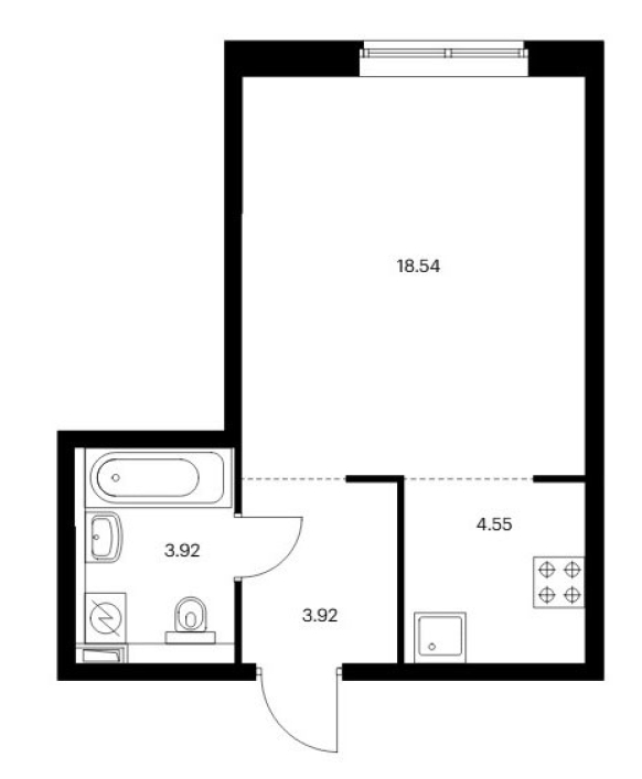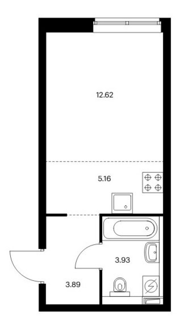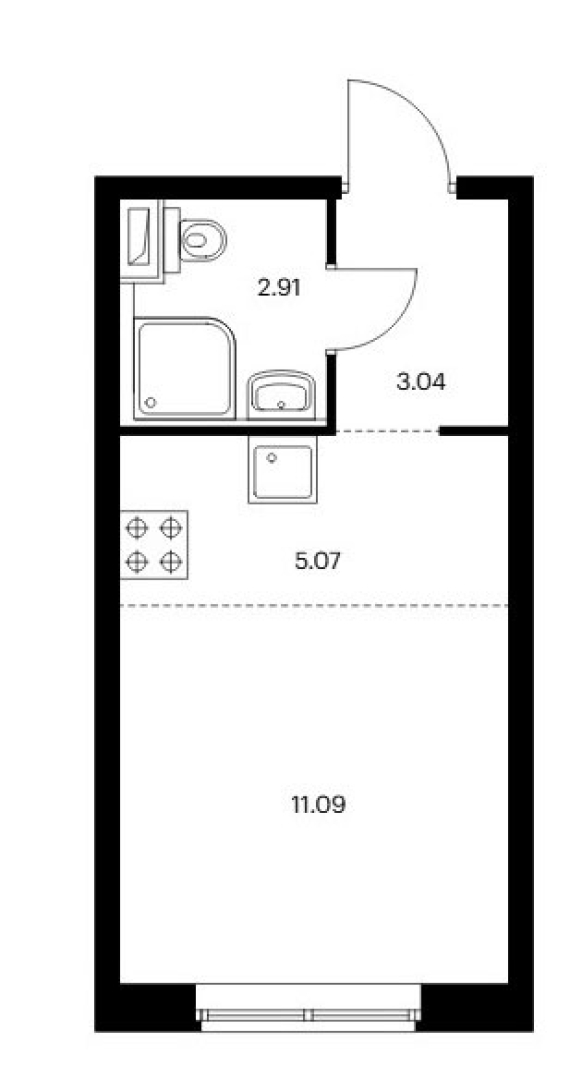 Планировка студий проста и незамысловата. Входная зона площадью от 3,04 до 3,92 кв.м., совмещенный санузел площадью от 2,91 до 2,93 кв.м., универсальная комната площадью от 16,6 до 23,09 кв.м. Все лаконично, понятно и, наверное, удобно.