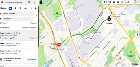 Если двигаться к новостройке из пригорода, то путь от 50 километра МКАД займет не более 6 минут (3,4 километра).