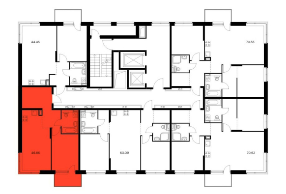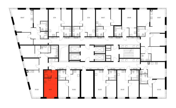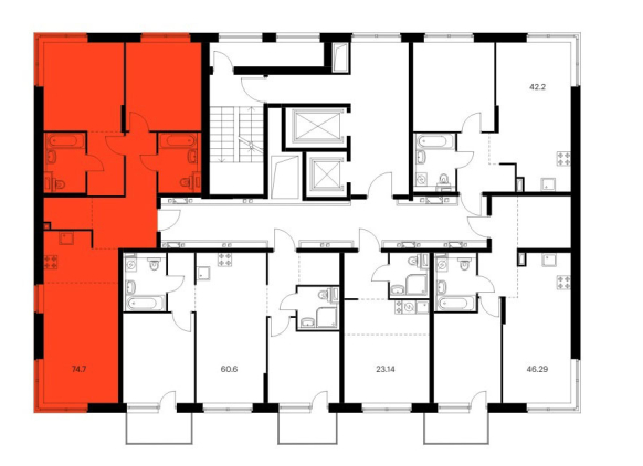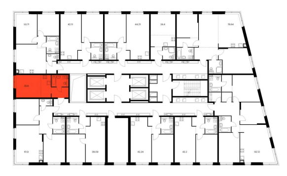 В каждой секции запроектировано от 5 до 13 квартир на этаже. В корпусах установят по два или четыре лифта фирмы Коне, на которых можно будет спускаться на минус первый этаж.