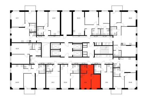 | Однокомнатная | 32,6 - 46,86 | 12 679 052 - 17 380 514 | 388 928-370 903 |