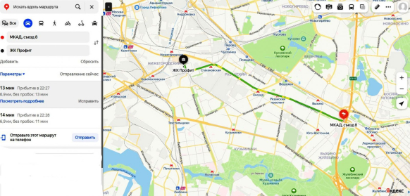От 8-го километра МКАД по Рязанскому шоссе время в пути до новостройки составит 15 минут (расстояние 7 километров).