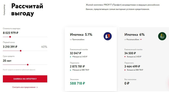 Специалисты застройщика могут оказать помощь в подборе и оформлении ипотечного кредита - у ГК «Гранель» установлены прочные деловые связи с десятками крупнейших российских банков. Например, в Промсвязьбанке можно получить кредит под 5,1% годовых.