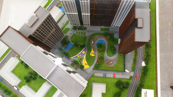 Дворовую территорию благоустроят и озеленят в соответствии с современными европейскими стандартами, так что для каждой категории жителей здесь найдется место под солнцем. Для детей - игровые площадки, для спортсменов - корты и министадионы, для пожилых людей - места для отдыха. Везде бесплатный Wi-Fi и точки зарядки мобильных устройств. Двор закрытый для машин с доступом по электронному ключу и круглосуточным видеонаблюдением.
